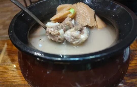 排骨莲藕汤是另一大特色,汤色白中带粉,藕煨得粉糯软烂,咬一口还会拉出长长的丝,喝一口汤,既有藕的清甜又有排骨的香浓,鲜香味美,一定要喝的。