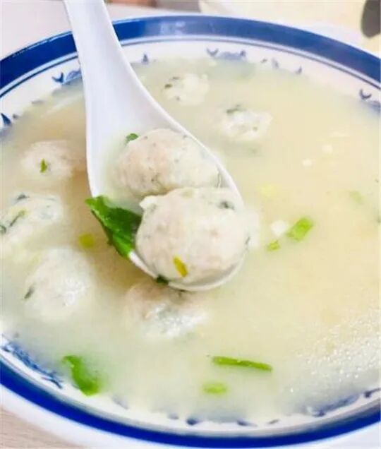特色小店一枚,手工鱼丸汤,骨汤打底,鱼丸鲜嫩,再加上小青菜点缀,更加的鲜美。