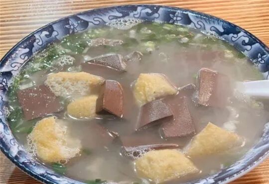 鸭血粉丝汤,鸭血柔嫩,鸭肝绵密,鸭肠脆弹,长滚过后的汤色稍浓,鸭汤喝起来舒畅。