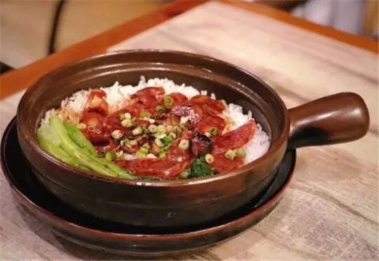 煲仔饭也不错,腊味饭看着就有胃口,香米做的,上面是满满一层腊肉,被菜心点缀着,淋上秘制酱油,米粒浸透了油汁,越嚼越香。