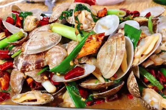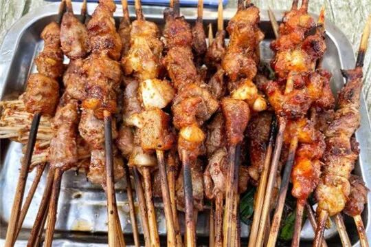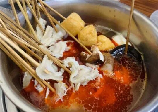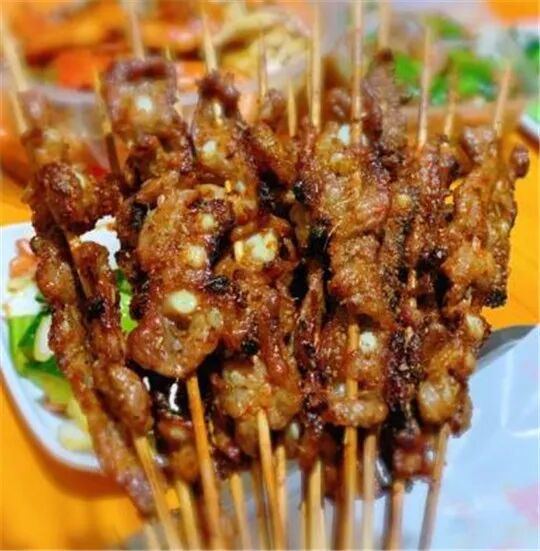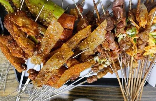 以串为主,还有不多是辣炒海鲜。羊肉串、麻辣排骨、牛蹄筋、牛筋皮、烤鸡翅、烤猪皮等等。