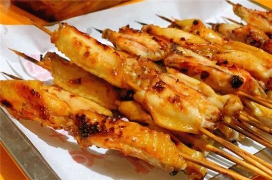 烤肉筋串,肥而不腻,油中带香,外焦里嫩。烤整个鸡脖,上面的肉很厚,烤的紧实干生。先把外面干焦的鸡脖肉扯下来,再去嗦啰夹缝中那点软嫩的肉,特别适合边喝酒边唠嗑。