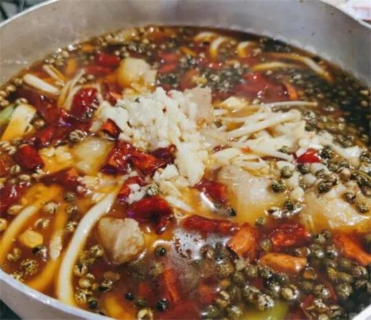 马勺鱼片或马勺麻辣烫,鱼片用的龙利鱼,没有刺,嫩嫩的,里面有土豆粉和金针菇。麻辣烫的食材更丰富。