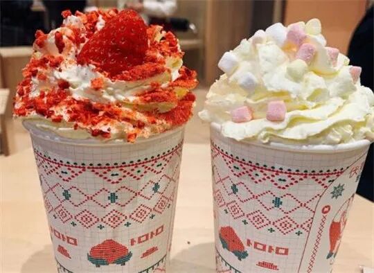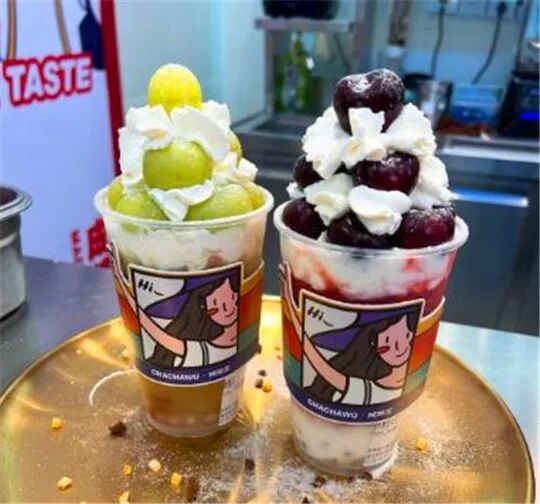 车厘子女王,女王果然颜值担当,每一杯车厘子女王用掉足足13颗车厘子。新鲜的车厘子冰沙+香甜奶油,拿在手里魅力满载。青提王,玉宝石般的青提,镶嵌在云朵般雪酪间,中部清爽的葡萄汁,底下是葡萄冻和芦荟果肉。