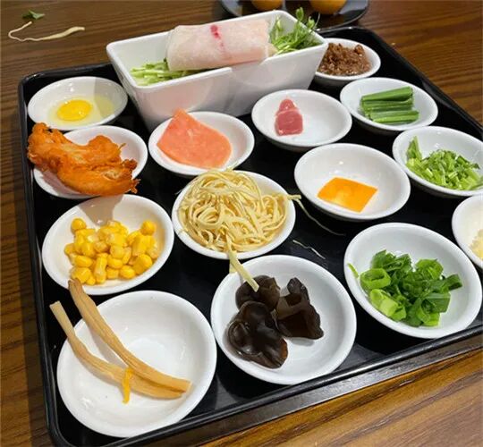 做云南风味米线,每一份米线豆非常的有仪式感,米线的配菜都是单独的放在小碟子里端上来后,自己依次加入,先加鹌鹑蛋和肉,再加入其他的菜品,最后倒入米线,几秒后就可以食用了,食材种类挺多的。