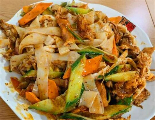 拌鸡架里面有圆葱黄瓜胡萝卜片,竟然还有牛筋面,满满一盘子。