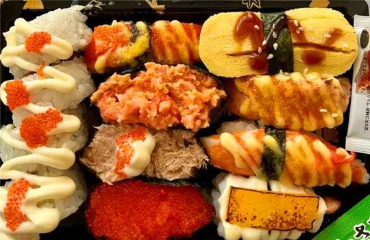 寿司蛋糕也是它家的一个特色,一整个蛋糕是一个个寿司组成的,精致又能吃饱,蛋糕内容是可以随客人的需求更换的。