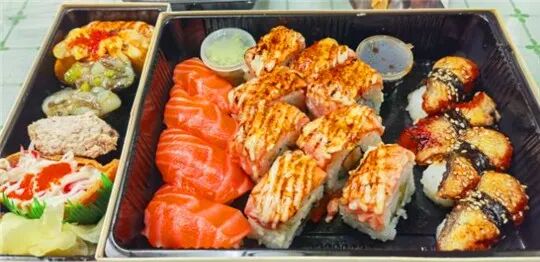 小店主营各种寿司加州卷各种卷和手握,米饭品质也好,做出的寿司也精致。这家寿司店的大拼盘套餐,对于寿司控来说,简直太爽了。