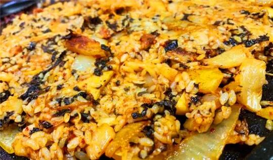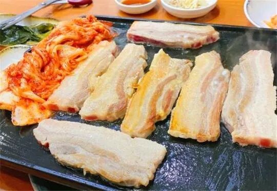 烤肉的量不是很大但品质不错。猪五花厚切,是肥肉很少的那种,很香,烤完了再来个辣白菜五花肉炒饭,妥妥的。