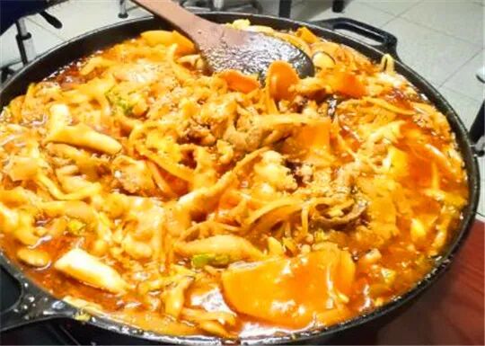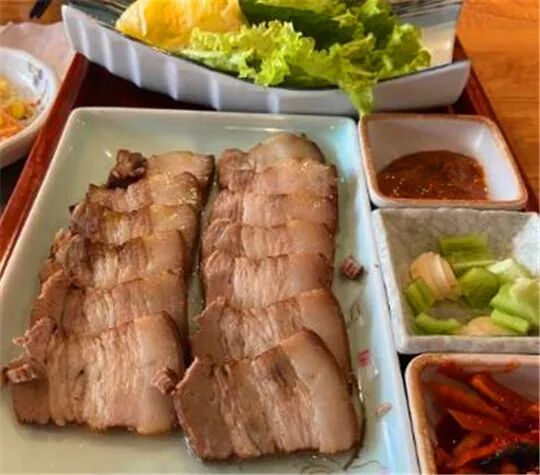 十几年的韩餐店了,感觉菜品都是那种家庭料理才有的,韩式烤牛五花,石板豆腐,天香鸭子、炖明太鱼、炒杂菜等等。
