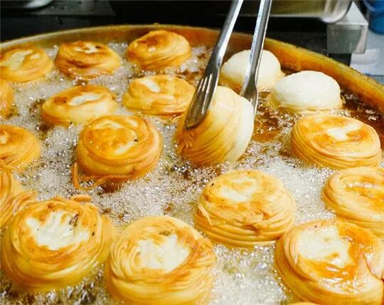 金丝牛肉饼,煎的金黄酥脆,一定要趁热吃,揭开的瞬间就疯狂爆汁滴油,汁水横流真不是虚无的夸张,牛肉馅有淡淡的胡椒味,油润焦酥的外皮裹着荤香。实在是香~