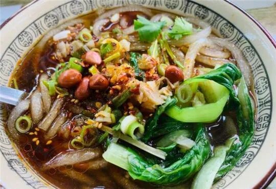 粉条晶莹剔透、柔软易食且筋道有韧性。里面的辣椒炸得很香,还有蒜香和肉末香,一碗下肚,全身微微出汗,酣畅淋漓,过瘾又开胃。