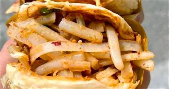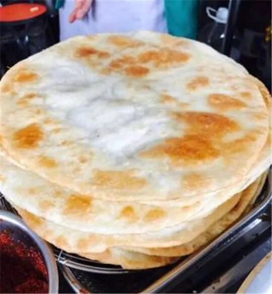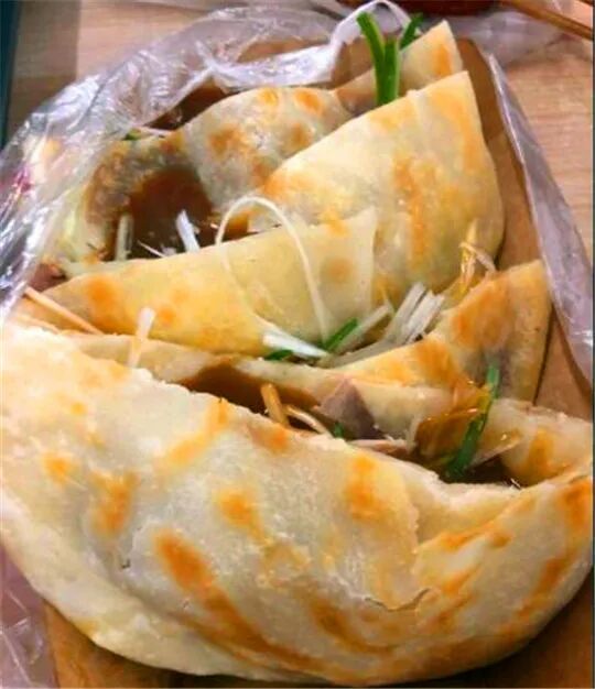 来自成都的小吃,这个锅盔有点像肉夹馍的那个馍。特别酥脆,咬一口酥酥掉渣。