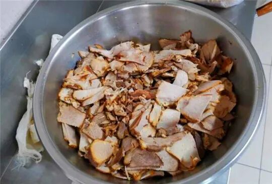 现烙的大饼就是香,外皮很酥,内里筋道。熏肉味道绝对是亮点,味道很足,肉是称重的。