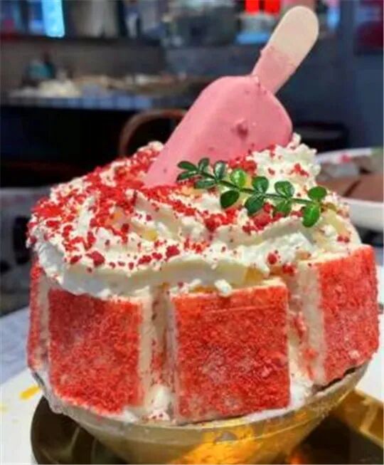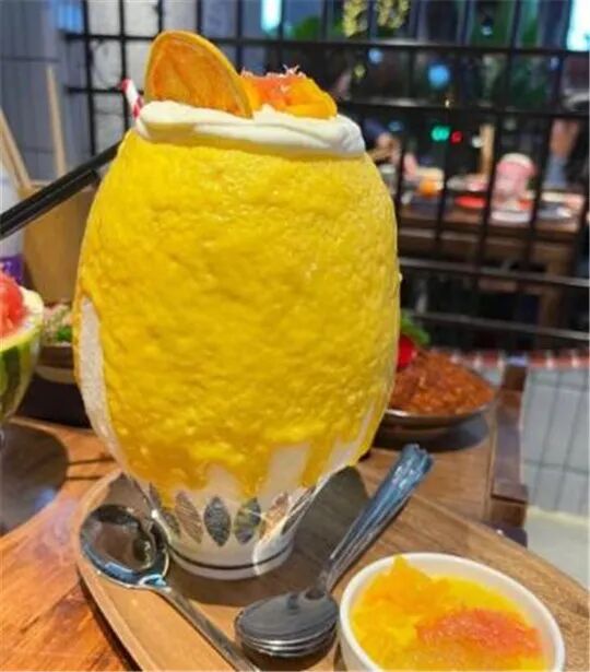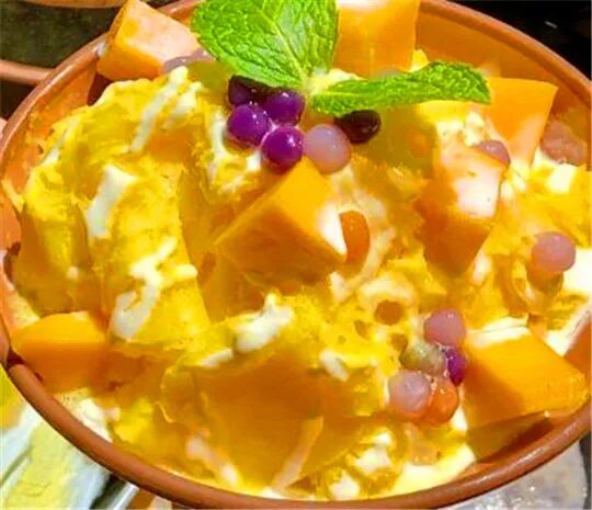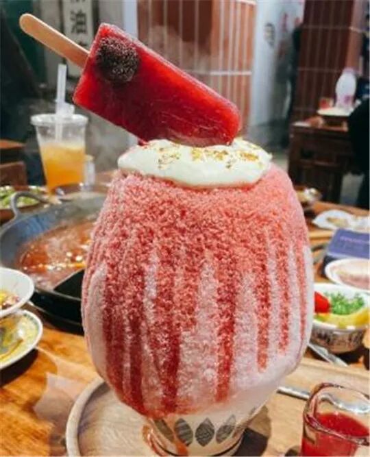 超高颜值外表下还藏着配料满满的大肚子,全部手工现刨。冰沙磨得很是细腻,像雪花一样,柔软细腻,吃下去入口即化,十分的解辣!