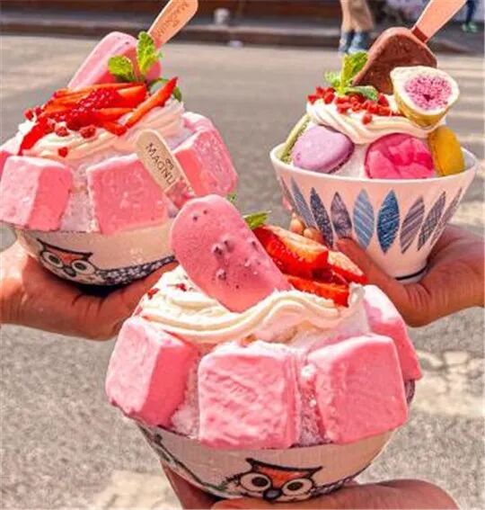 酸奶梦龙雪山冰、马卡龙雪山冰、蜜瓜奶香冰球,颜值高又解辣~