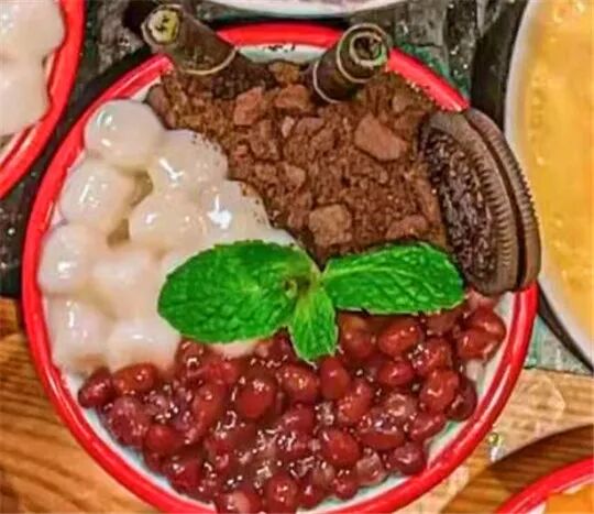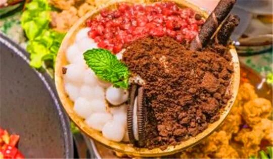各种的冰点,红糖冰汤圆、杨枝甘露冰汤圆,奥利奥冰汤圆,都是解辣神器,五里关特色冰汤圆!当你辣到满嘴想喷火的时候,一口红糖冰滋润,那是真的一个字“爽”。再加上软糯Q弹的汤圆,绝绝子!