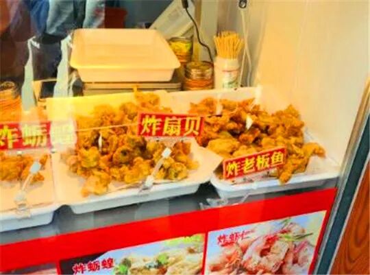 各种炸海鱼,炸扇贝肉、炸虾仁,炸蛎蝗等等,也几乎都是按季节性来设定鱼的品类。炸出来口感,总结一下就是三个字:鲜、酥、香!