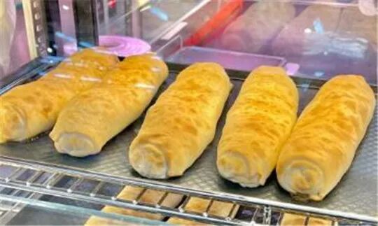 爆浆拉丝的网红牛肉芝士卷,足足有20cm长,拿在手里沉甸甸的。咬下去外皮又薄又润,一口就能嚼到里面大片牛肉,香软细嫩还会爆汁,不干也不柴,作为肉食党一口就上头!