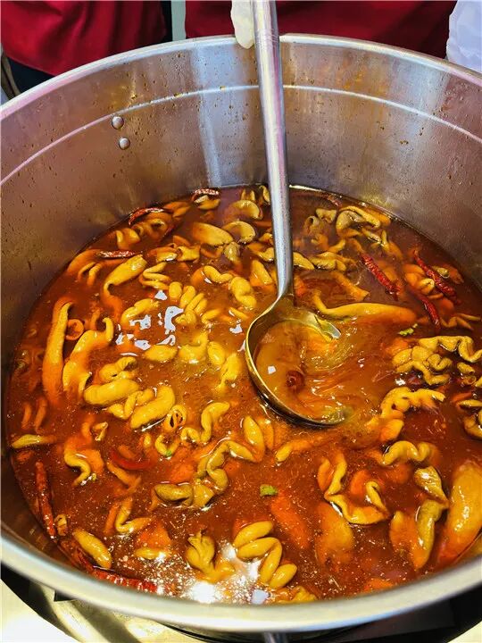 现卤现捞的肥肠店店,店子虽然不大,现卤大肠,肠衣经过9次反复清洗,油啥的都没有,肥肠处理很干净。满满当当的大肠放满了一整锅。一天出两锅,上午一锅,下午一锅。有麻辣和五香两种味道。
