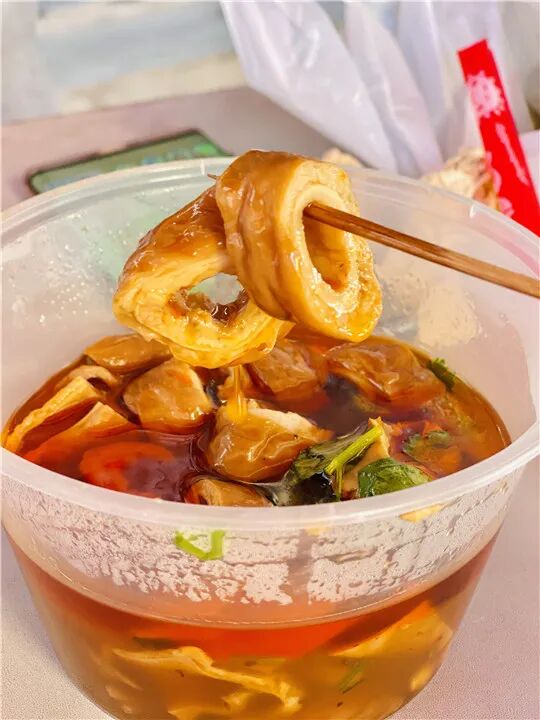 热乎乎,入口弹牙,是满口的肥美。肥肠这一类内脏的独特魅力,得是爱吃的人才懂,弹韧的口感间,又透着粗犷的香气,让人欲罢不能。