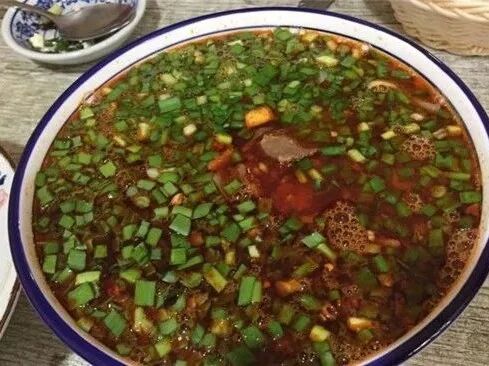 羊杂汤,羊汤白白的,汤料不少,羊肉、羊血、羊肠等等,也可以自己调口味。一口火勺,一口羊汤,得劲~