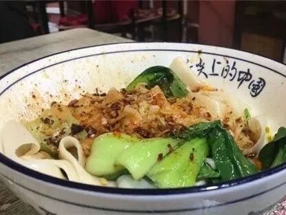 油泼面,应该叫油泼扯面非常劲道,面香味足,量很足辣是香辣不是特别辣。油泼面真的好酷,感觉就是传说中的裤带面那么宽,很好吃。