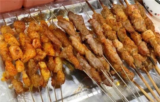 老店搬到了新址,夫妻店,除了牛肉火烧+羊汤,还有新疆烧烤。都是奔着铁岭火烧来的,类似馅饼,是一种牛肉馅小酥饼,用豆油煎烤出来的,配羊杂汤。