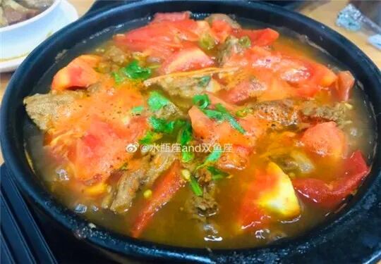 砂锅牛肉柿子,牛肉块切的还算蛮大的,给的量也是非常可以的,牛肉不柴,入口的香气也是足够的,真的是柿子锅呀,切大块的西红柿,酸甜的别提多好喝,更突出了牛肉汤的味道,推荐!砂锅都可以再添一点汤。稻花香米饭和油饼都很好哦,还有很多款砂锅都不错。