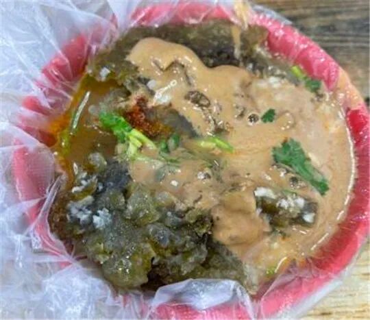 焖子的块也大,但是味道很正点,疙不多,口感较软。芝麻酱味道略淡,可以再加一些酱油、辣酱等调味。