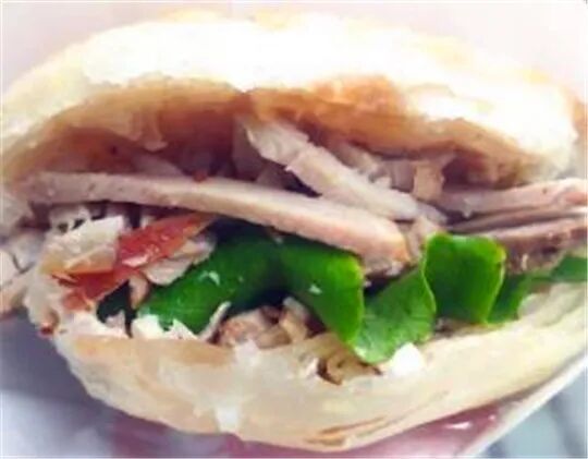对夹夹得肉,夹猪肉、夹鸡肉。选夹肉多是熏肉,选五花肉,切得碎碎的,肉质细腻、瘦而不柴、肥而不腻、韧而不硬。再弄碗鸭血粉丝搭配,简简单单一餐。