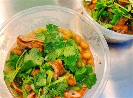 麻辣混合了红油的味道,麻麻辣辣的。五香肥肠香味也是很浓郁。每份肥肠拌上黄豆,撒上葱花香菜,提味。