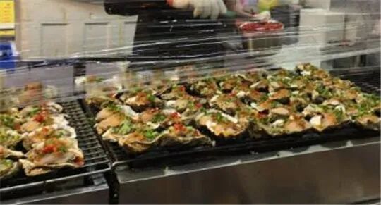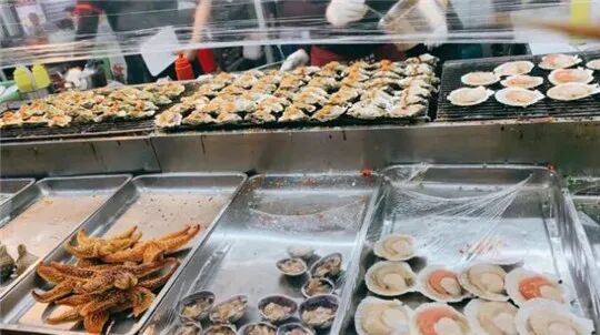 满满一炉子的海蛎子是这家的招牌,10元4个的、大写的实惠。不光有海蛎子,还有烤扇贝、带子、大噶、海螺···各种贝类应有尽有,洗净的生蚝加上粉丝、蒜蓉、葱花香菜,再放上辣椒段,最后淋上海鲜酱,放在烧烤架上咕噜咕噜冒汁,每次都要来几轮的,价钱也不贵,是可以甩开膀子敞开吃的地方。