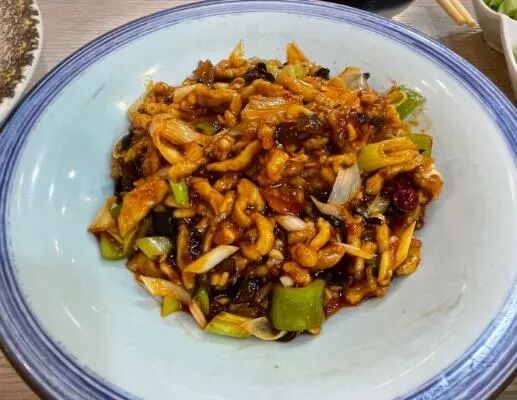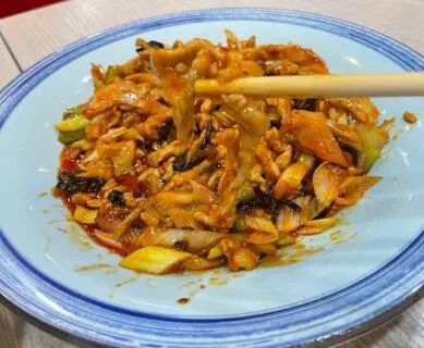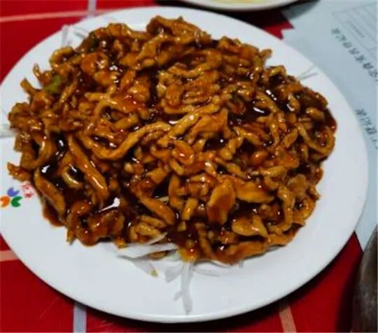 就拿大连改良版的鱼香肉丝来说,酸酸甜甜也就数它了,放眼望去,满满一层的肉丝,胡萝卜丝、辣椒丝、笋丝、木耳也一样都不少,鱼香肉丝就着米饭吃是一个味道,被用卷饼又是另一翻味道!饼的劲道再配上肉丝的酸甜,保证你食欲大开!