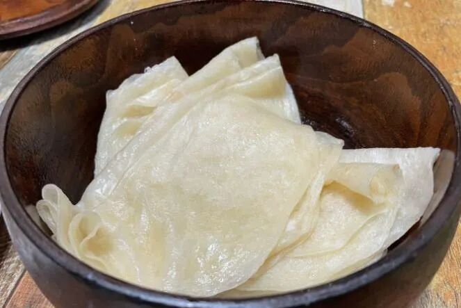 春饼在店内现烙现上,纯手工制作的春饼,有着柔韧的弹性,口感咸香,卷上其他配菜一起吃更是能够尝到多种滋味。