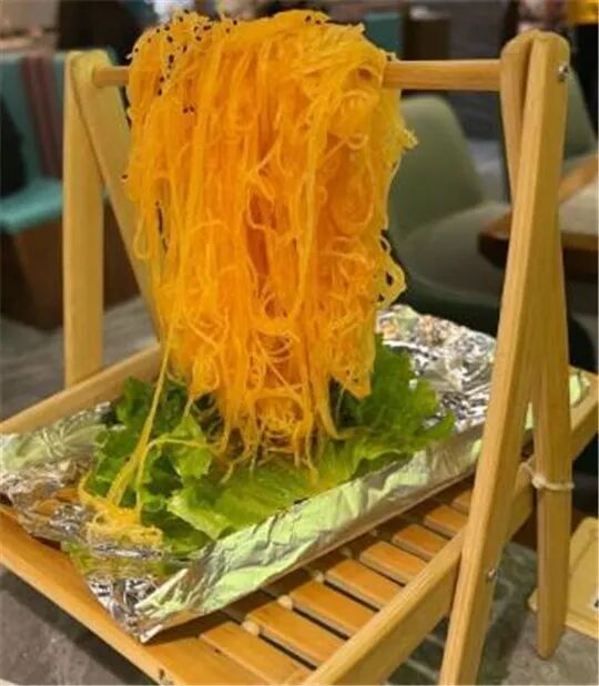 格格爱吃的土豆丝,超长超细的土豆丝用黑芝麻点缀,每一根都细如龙须。贵妃清肺梨汤,清甜的梨汤,也是到店里必点的饮品。