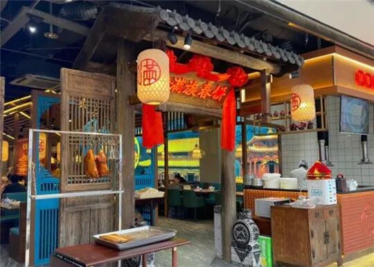 以“满族”文化为大背景。在运用现代装修装饰与独特的满族文化相融合。在门外就能感受到浓浓的满族风情。门口明档现做现烙着春饼,春饼分春饼和筋饼两种。相较于春饼,筋饼柔软中有韧劲,更加薄透,筋道更足。