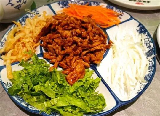 京味十足的春饼店,质朴却又精致不俗。有东北家常菜和烤鸭的,三色春饼,三种颜色三种口味,黄瓜味、原味、胡萝卜味,薄软筋道,Q弹有韧劲。