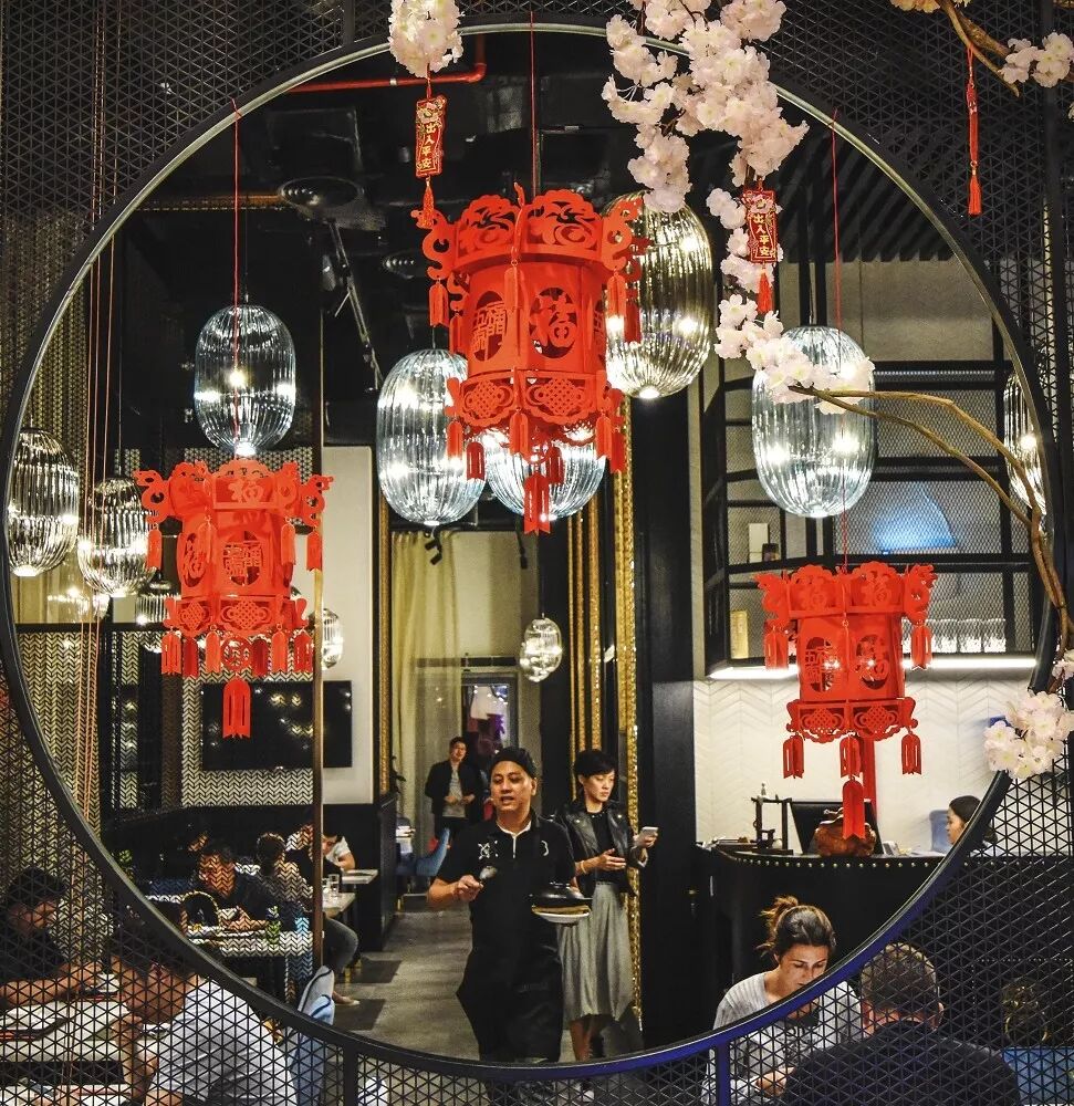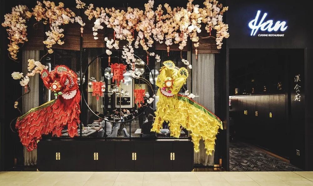 整体采用不浮夸的黑金色新中式风格,在有限的空间里兼具雅致和新潮,也符合中西方的共同审美。而店门口的中式镂空窗,则可以搭载不同的主题和装饰元素,每一个节庆日都可以"盛装打扮",提升氛围,可以说是非常精彩的设计,也成为许多过往路人争相拍照的"景点"。
