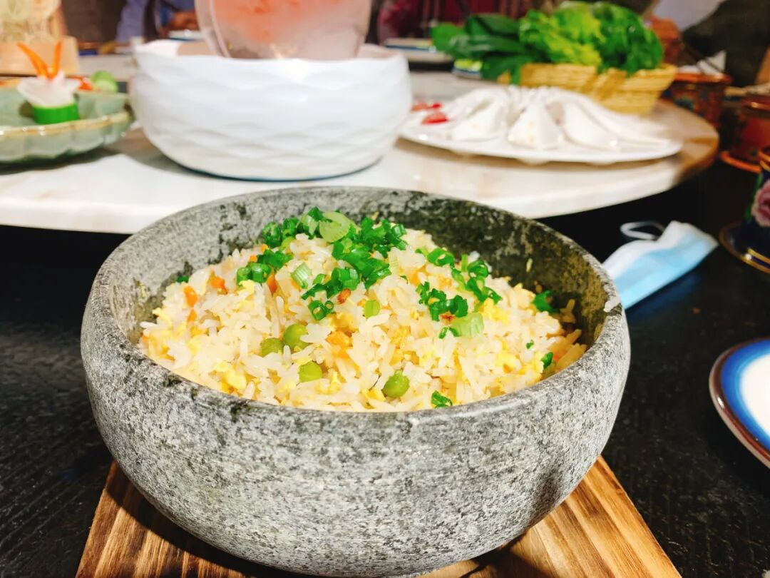 如其名,用一个石碗作为容器端出,是作为主食的不二选择。粒粒分明米饭包裹着蛋液,色泽金黄,虾仁嫩滑。