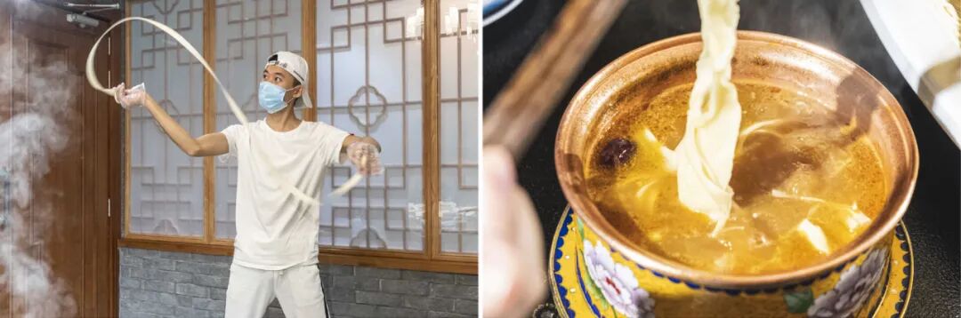 除此之外,现场甩的面加入火锅里也是极好的主食选择呦。