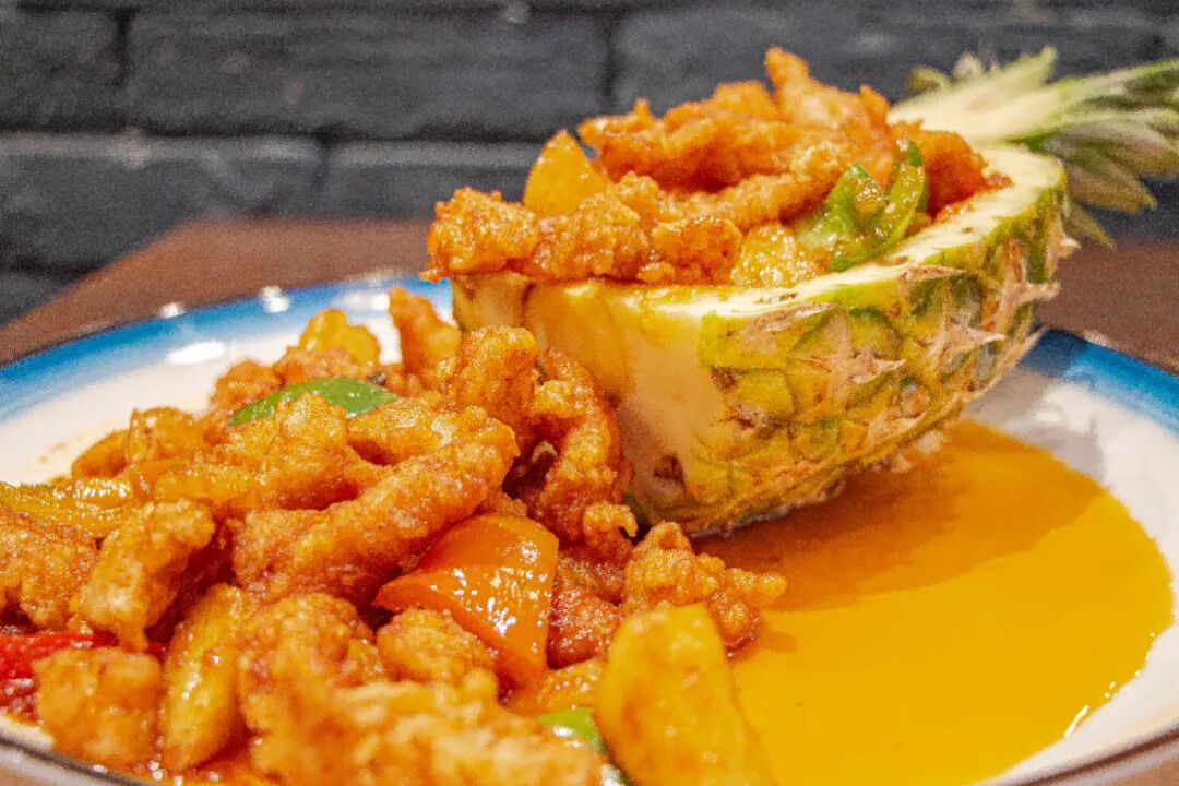 清爽的果香与酸甜的鸡肉碰撞出这一款菠萝鸡,对不能吃辣嗜甜的朋友非常友好,酸甜的酱汁很好的凸显了鸡肉的鲜美,同时菠萝的微酸的果香又平衡了甜味,令人白吃不腻!