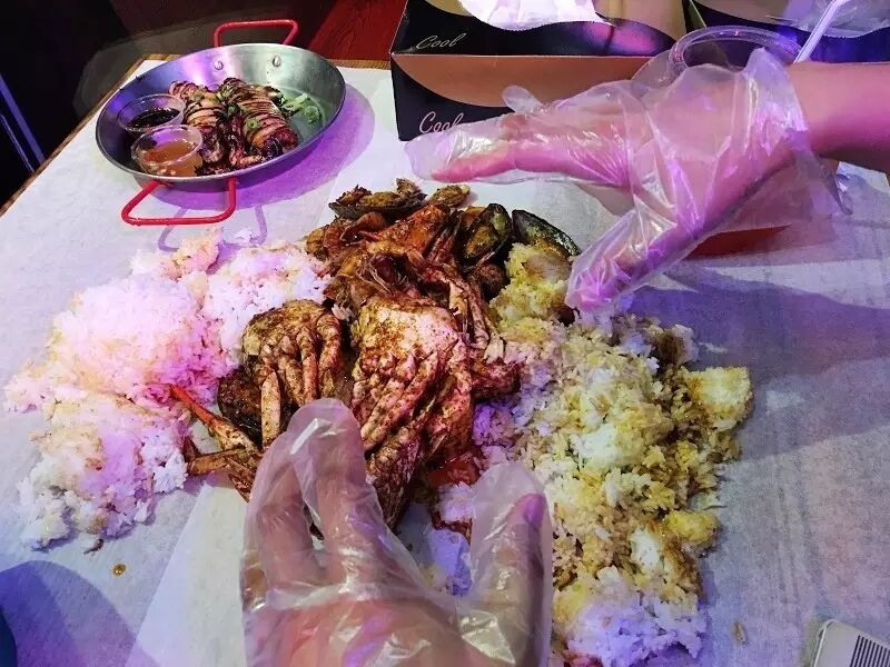 Dampa的就餐方式很特别,这里不给你提供任何餐具,但会给你无限量的塑料手套,于是你懂得,这是一家吃饭基本靠手的餐厅。