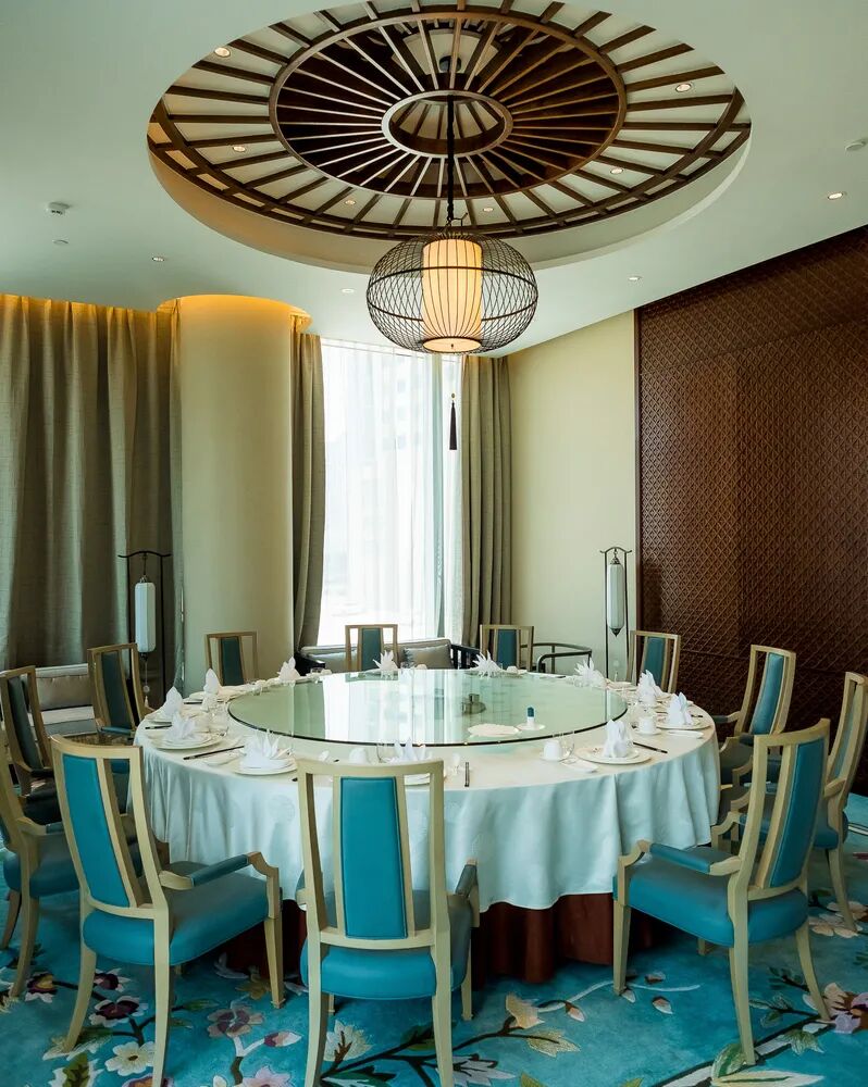 相比许多海外中餐厅要不毫不打扮,要不极致浮夸,龙腾轩的整体设计感既精致又克制,给人一种很体面的舒适感。曾经很长一段时间,迪拜华人的大部分高端宴请都放到了龙腾轩来举行。