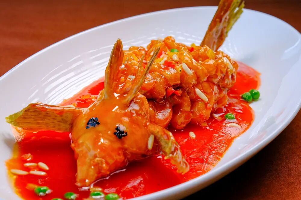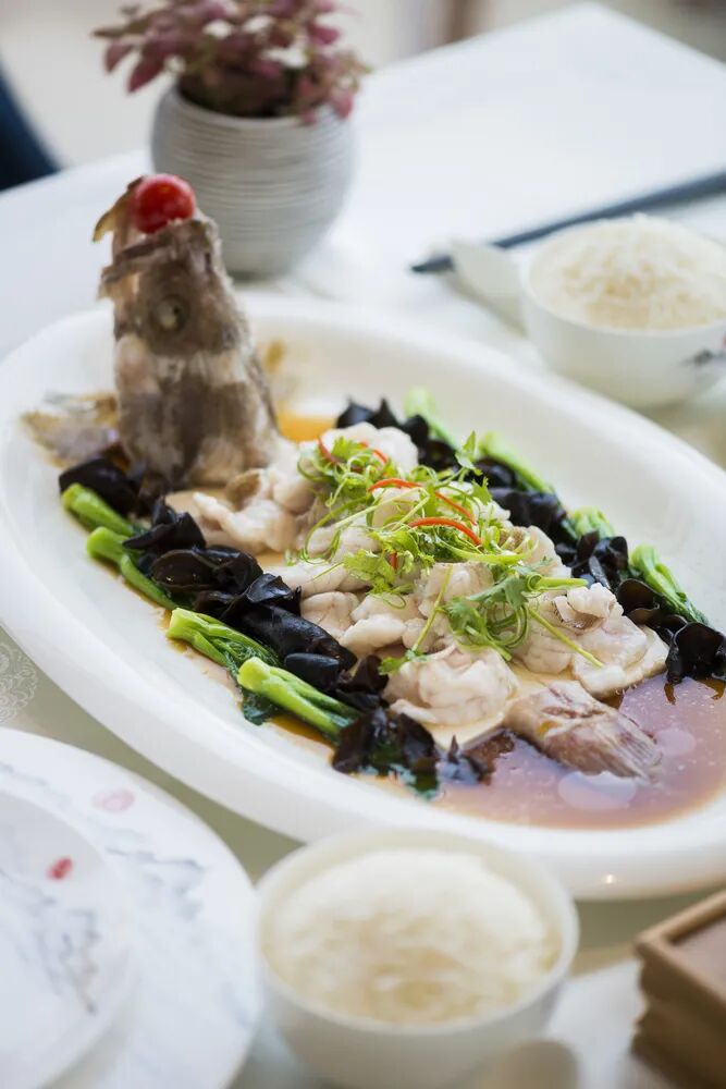这可能是迪拜做的最漂亮的松鼠石斑鱼,“松鼠眼睛”还专门做了点缀。作为中国名菜在龙腾轩有着完美的复刻。而石斑鱼的天生条件更是多赋予了一层鲜嫩爽滑。