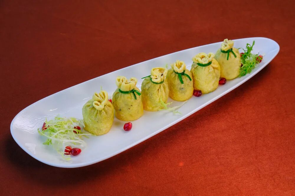 小笼包看似简单其实是很讲究技巧的点心。重点是如何在薄皮里锁住汤汁而外形不塌,而在迪拜,更难的是如何把猪肉小笼包改良成鸡肉而不失美味,龙腾轩则做到了完美的改良,更加鲜美而不浊。
