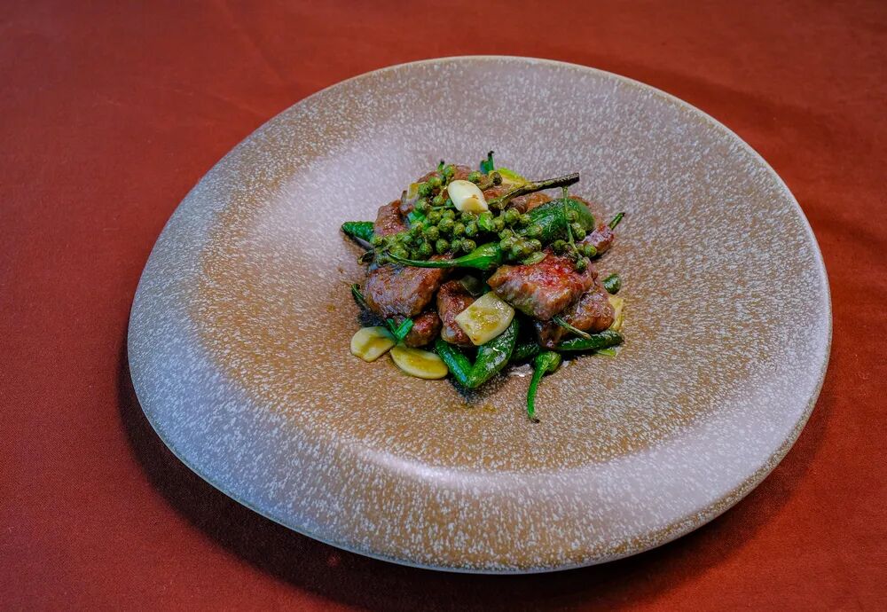 如果喜辣,麻椒牛肉也是不错的选择。空运过来的新鲜川渝麻椒体现原汁原味,嫩滑的牛肉和飞溅的辣意能在粤菜的清鲜中感受火热的江湖气。