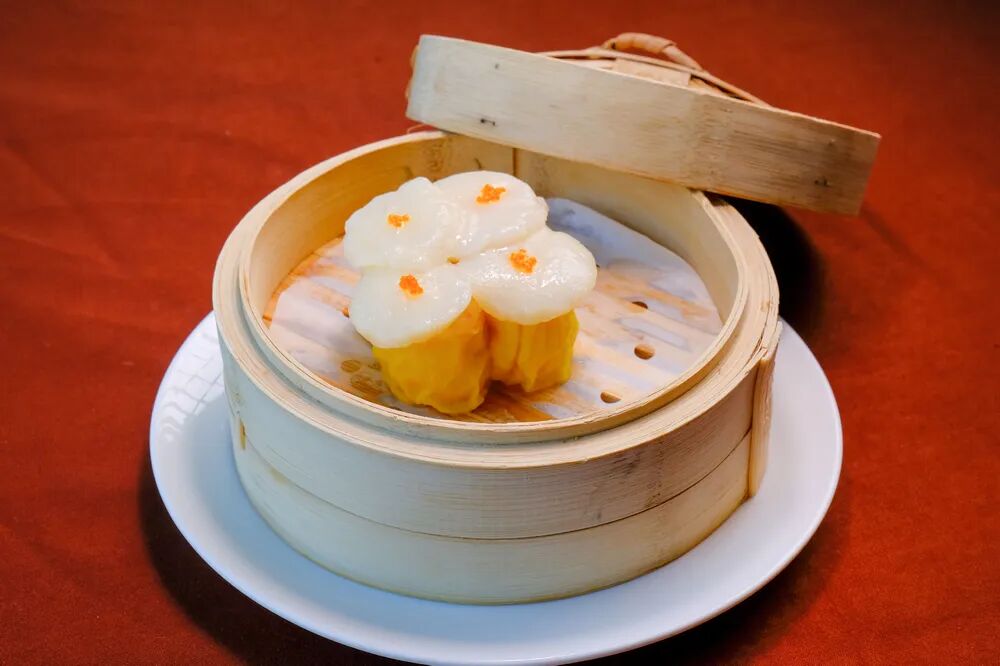 这道是传统烧卖的升级版,每一颗烧卖上都加了一层澳洲带子,鲜气十足。