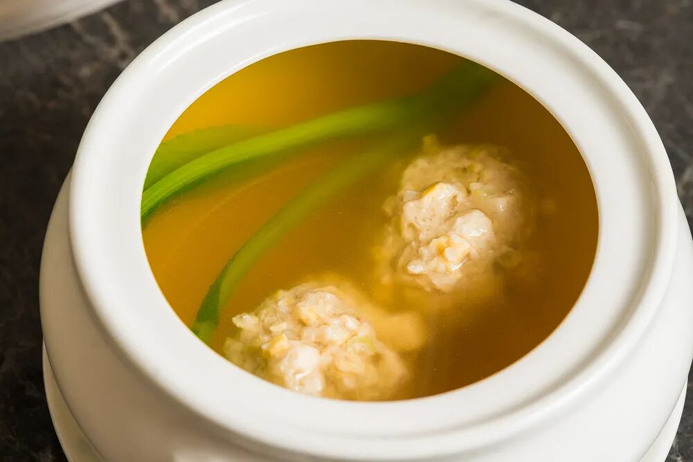 龙腾轩的经典招牌汤品,狮子头原料采用的是符合清真的鸡肉与豆腐的混合。汤头是久炖的鸡汤,看不到杂质,清澈干练,有着原滋原味而不燥的质地。