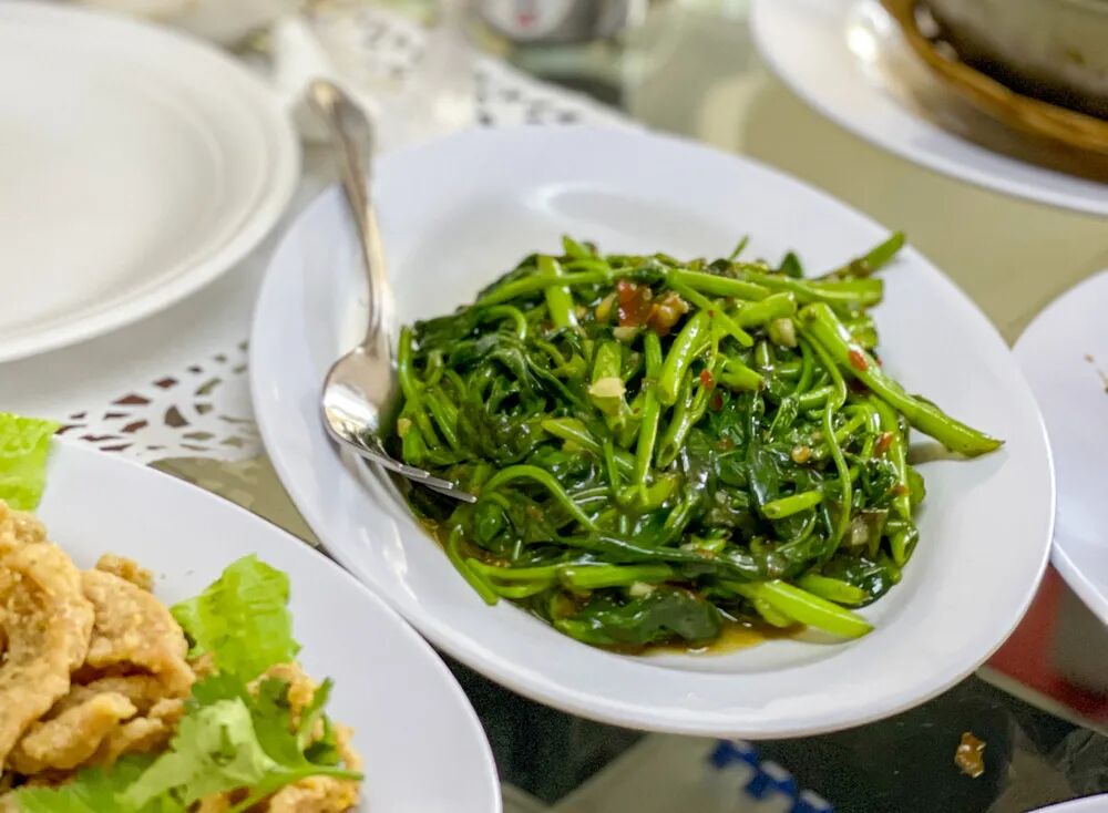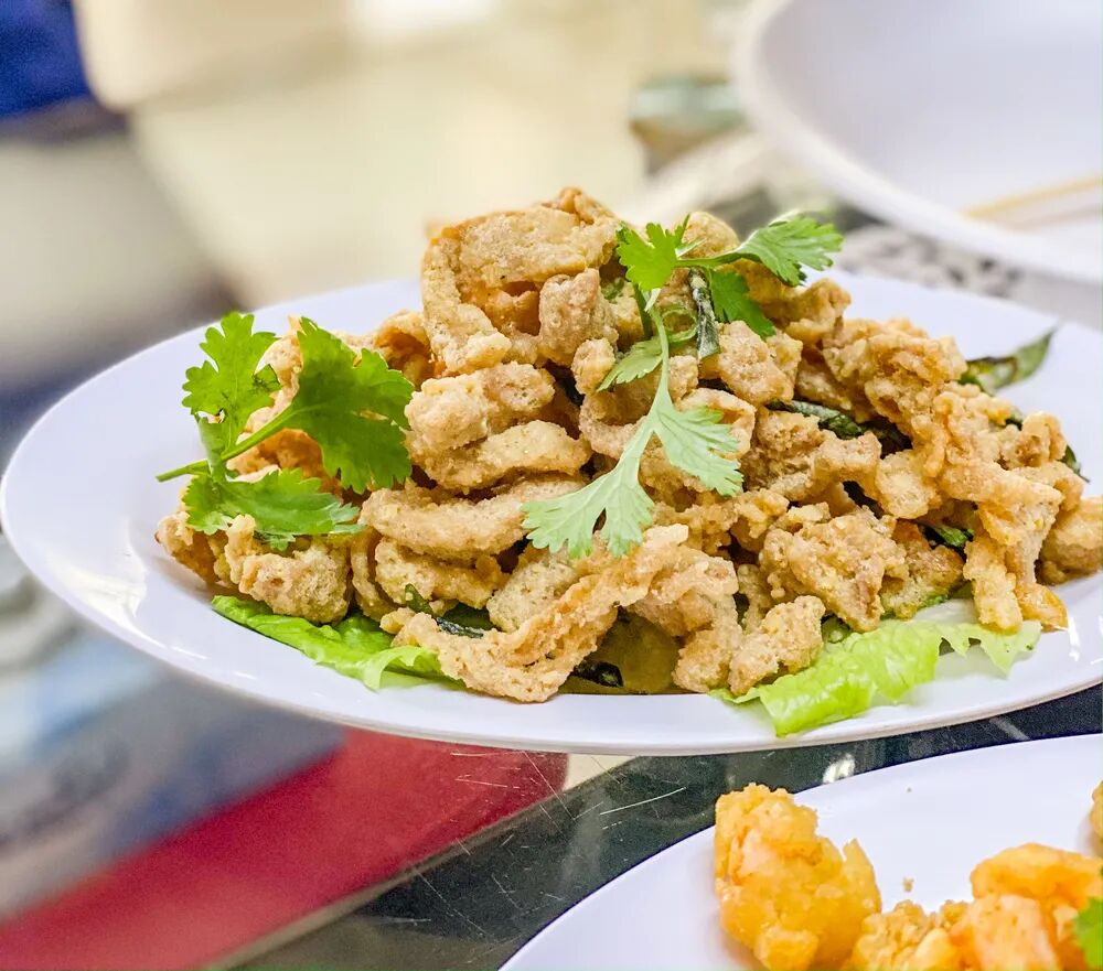 这道菜翻译成食材就是桑巴酱辣炒空心菜,是最典型的南洋口味,“马来风光”并不是真的湖光山色,而是最具新加坡口味的一道家常菜,好比我们国内的青椒土豆丝。吃起来依旧清爽,是必点的娘惹料理。